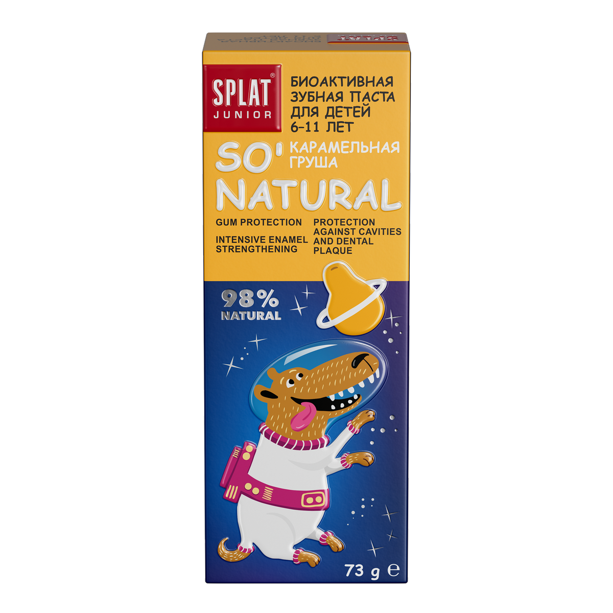 Детская зубная паста SPLAT JUNIOR не содержит фтор, парабены, SLES, триклозан, хлоргексидин, агрессивные абразивы, синтетические красители и ароматизаторы, ПЭГ, продукты нефтепереработки