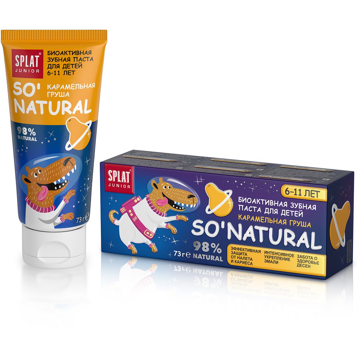 Характерной особенностью младшего школьного возраста является эмоциональная впечатлительность, отзывчивость ребенка на все яркое, необычное, красочное. В этом возрасте очень важно хорошо выглядеть и иметь свежее дыхание, так как круг общения расширяется. Кроме того, в это время особенно важно следить за гигиеной полости рта ребенка, контролировать чистку зубов, чтобы «молодые» постоянные зубы появились при хорошем уровне гигиены полости рта. Постоянные зубы прорезываются с не до конца окрепшей, минерализованной эмалью, которая будет укрепляться еще 1-2 года. Это очень важный период, от которого будет зависеть здоровье зубов в будущем. Детская зубная паста без фтора SPLAT® Junior не содержит фтора, гипоаллергенна и безопасна. Она защищает от кариеса, бережно удаляет налет , укрепляет эмаль, ухаживает за деснами и дарит свежее дыхание. SPLAT® Junior – паста для настоящих исследователей.