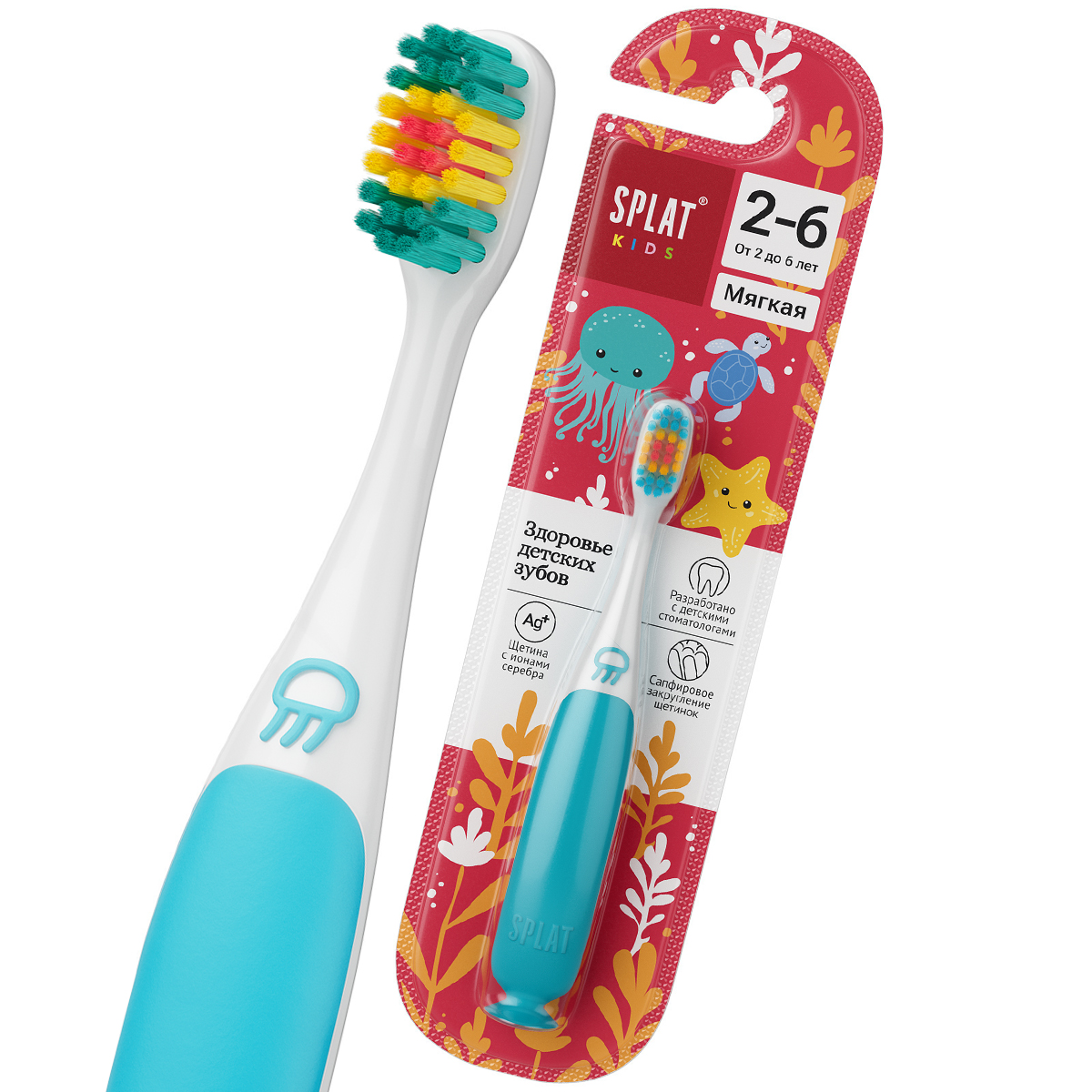 Детская зубная щетка «SPLAT Kids» от 2 до 6 лет с ионами серебра, мягкая, голубая