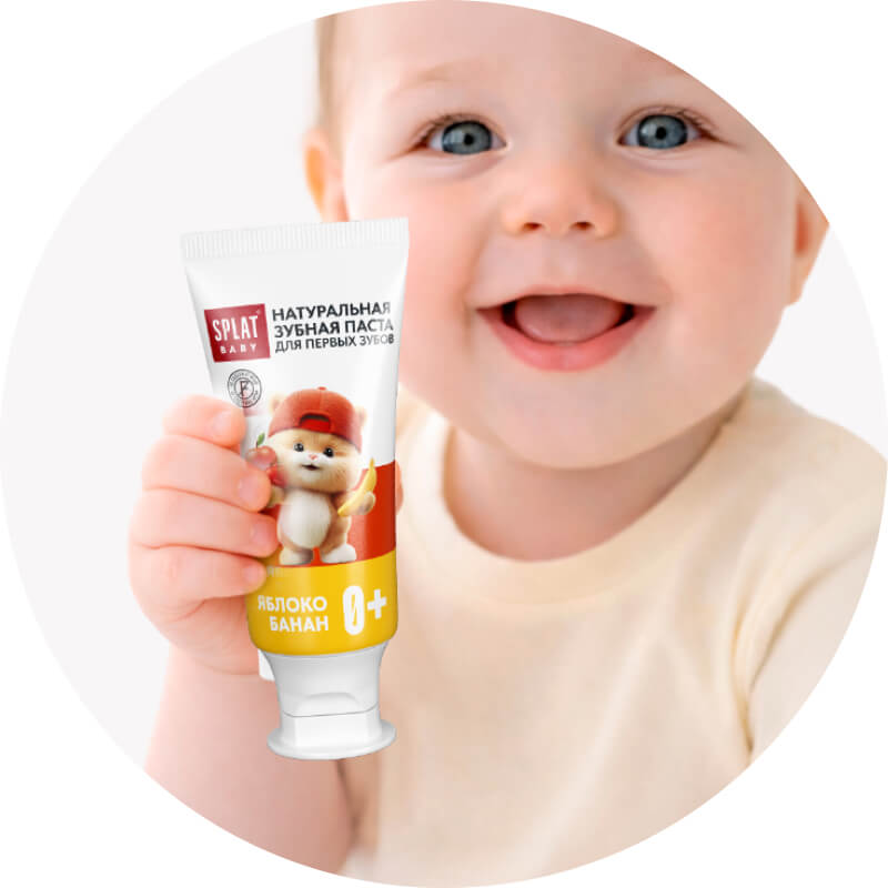 Зубная паста SPLAT BABY содержит 99% ингредиентов натурального происхождения, а также она безопасна при случайном проглатывании. Паста рекомендована стоматологами.