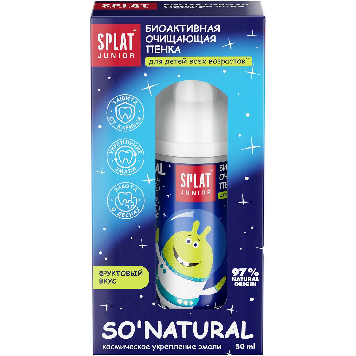 Детская пенка для рта SPLAT® Junior с молочными ферментами и кальцием. Подходит для использования в поездках, в школе и в других местах, когда нет возможности почистить зубы. Благодаря биоактивному органическому кальцию (Кальцис) защищает детскую эмаль. Экстракт лакричника защищает зубы от кариеса. Комплекс молочных ферментов обеспечивает защиту от бактерий. Подтверждено тестами in vitro в Японии. Без фтора.
