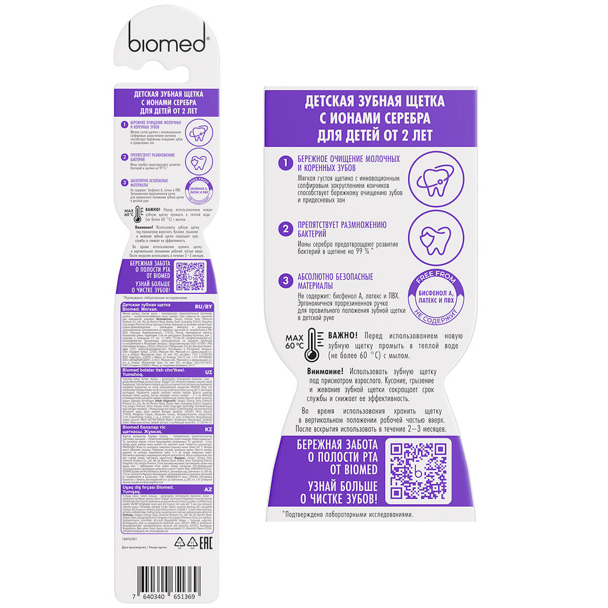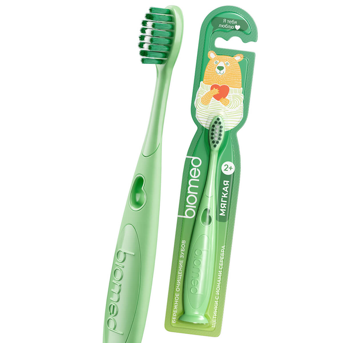 Зубная щетка детская BIOMED (БИОМЕД), с ионами серебра, мягкая. Зеленая от 2 лет
