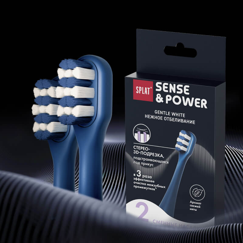 Hабор сменных насадок для электрической звуковой зубной щетки SPLAT Sense&Power Gentle Whitening бережное отбеливание для удаления налета и пятен. Запатентованная 3D подрезка подстраивается под прикус.