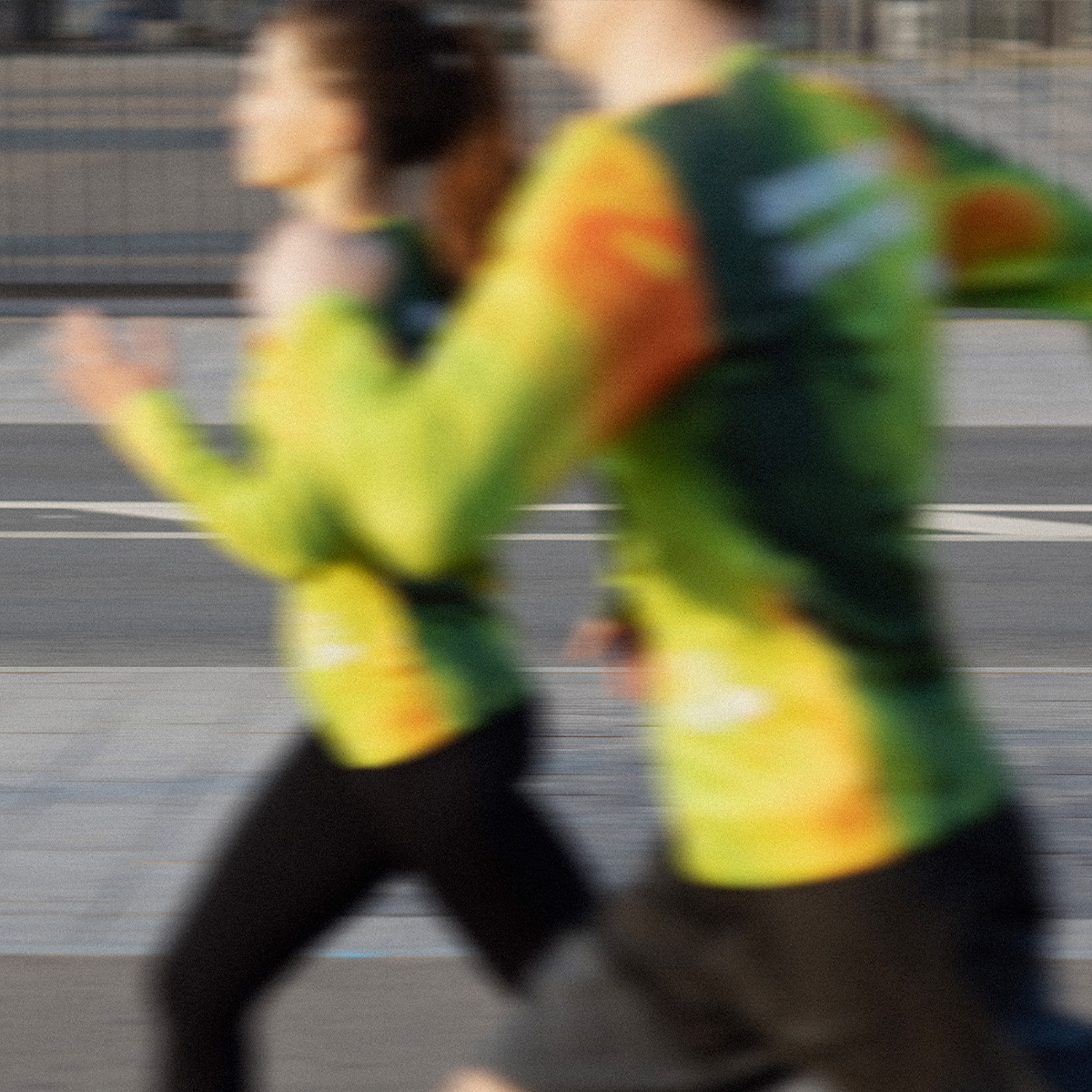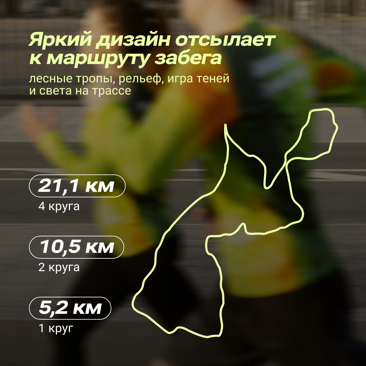 В этом принте — момент, знакомый каждому бегуну. Когда ты остаёшься один на один с дистанцией, с дыханием, с собой. В его цветах — путь природы: от весенней зелени до осеннего золота и насыщенного красного, как поздний октябрь.