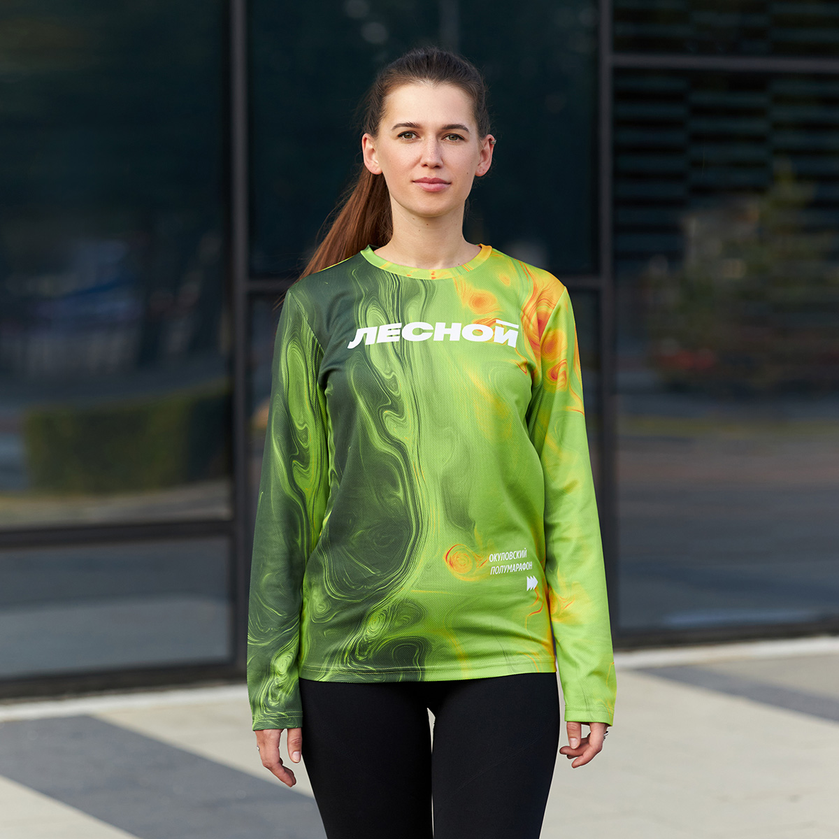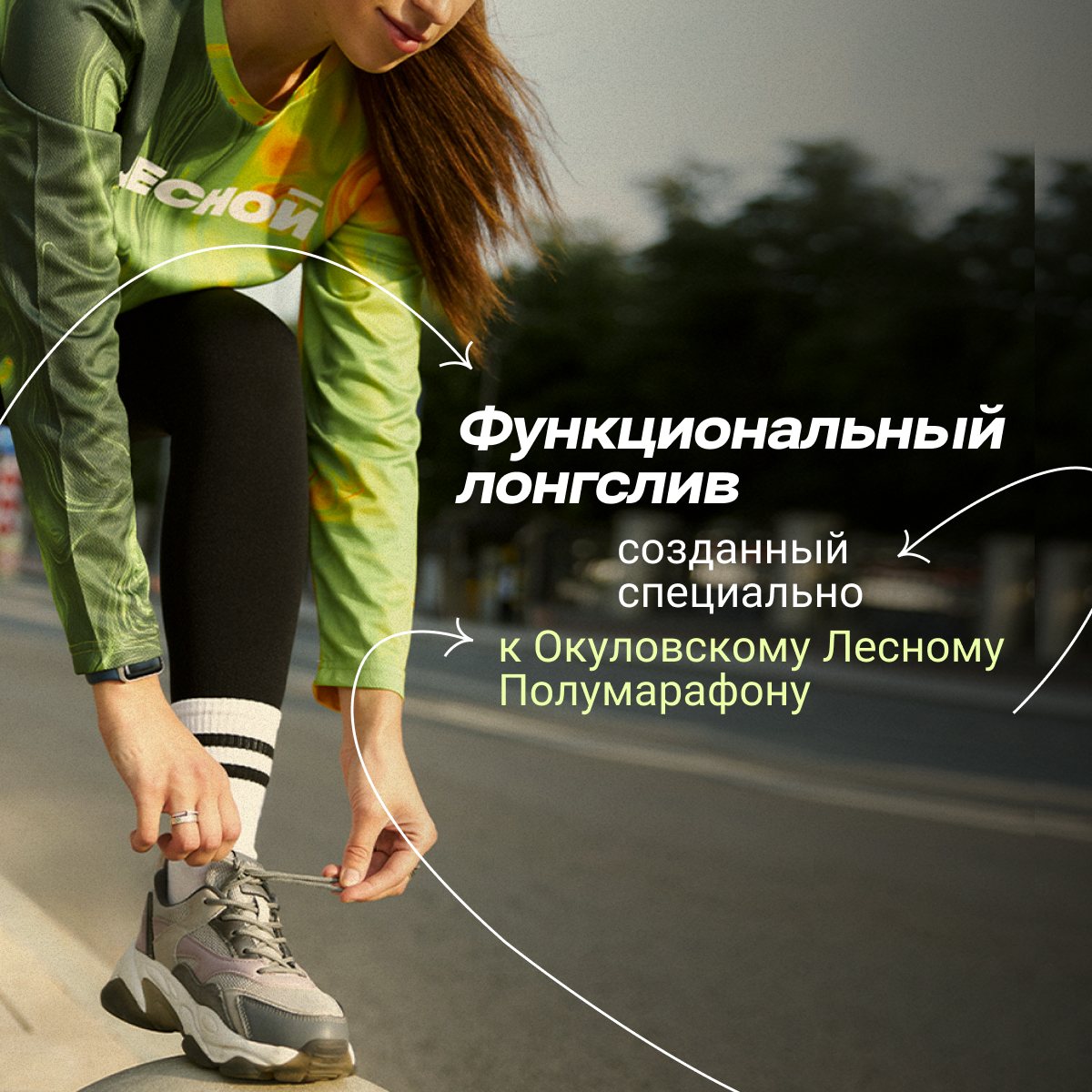 Функциональный лонгслив из лимитированной коллекции, посвященной ЛЕСНОМУ Окуловскому Полумарафону. Лёгкий, удобный и универсальный — подойдёт для пробежек, тренировок, прогулок и повседневной активности.