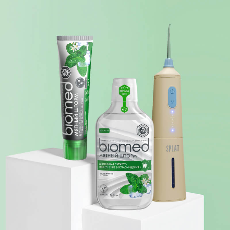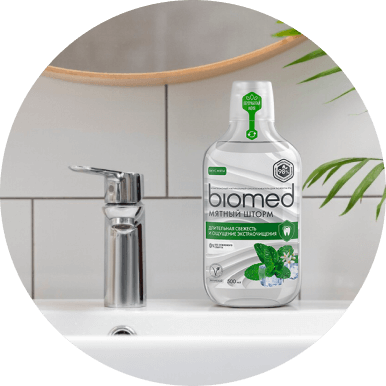 Используйте вместе с зубной пастой Biomed Мятный Шторм