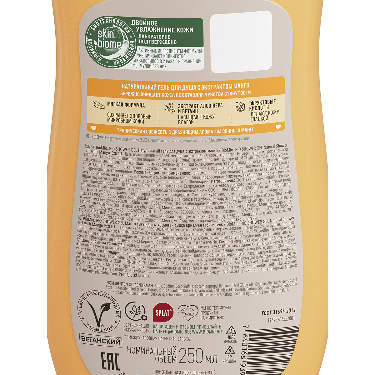 Гель для душа BioMio® BIO SHOWER GEL с экстрактом манго, 250 мл