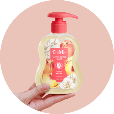 Гипоаллергенное натуральное жидкое мыло Biomio персик-фрезия на 96% состоит из компонентов природного происхождения. Масло персика делает кожу более упругой. Жидкое мыло для рук очищает и одновременно увлажняет кожу. Инновационный запатентованный комплекс из алоэ вера и бетаина увеличивает в клетках количество белков-аквапоринов, которые доставляют воду в эпидермис. Жидкое мыло мягко и деликатно очищает кожу рук. Подходит для всей семьи (для детей от 3 лет). Поддерживает здоровый микробиом кожи за счет рН 5-5,5.