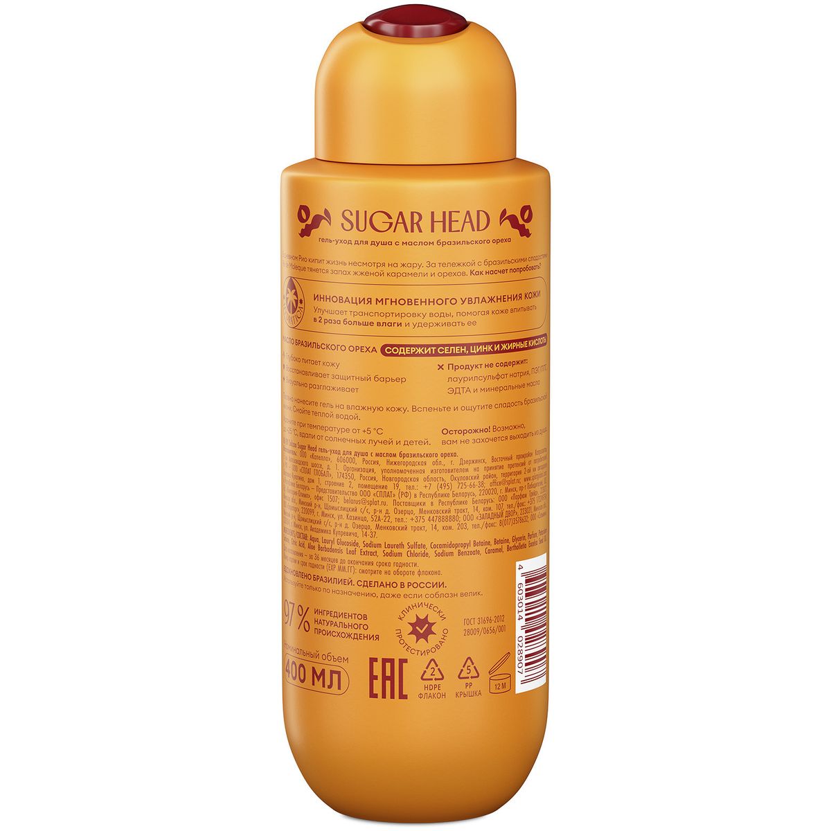 В дневном Рио кипит жизнь несмотря на жару. За тележкой с бразильскими сладостями Pé de Moleque тянется запах жженой карамели и орехов. Как насчет попробовать? Инновационная технология мгновенного увлажнения кожи HYDRATICA. Улучшает транспортировку воды, помогая коже впитывать в 2 раза больше влаги и удерживать ее. Масло бразильского ореха содержит селен, цинк и жирные кислоты: глубоко питает кожу, восстанавливает защитный барьер, визуально разглаживает, снижает трансэпидермальную потерю влаги на 21%, по результатам клинических исследований. Женский гель для тела не оставляет чувства стянутости и шелушения. В составе нет SLES, минерального масла, PEG/PPG, ЭДТА, парабенов.