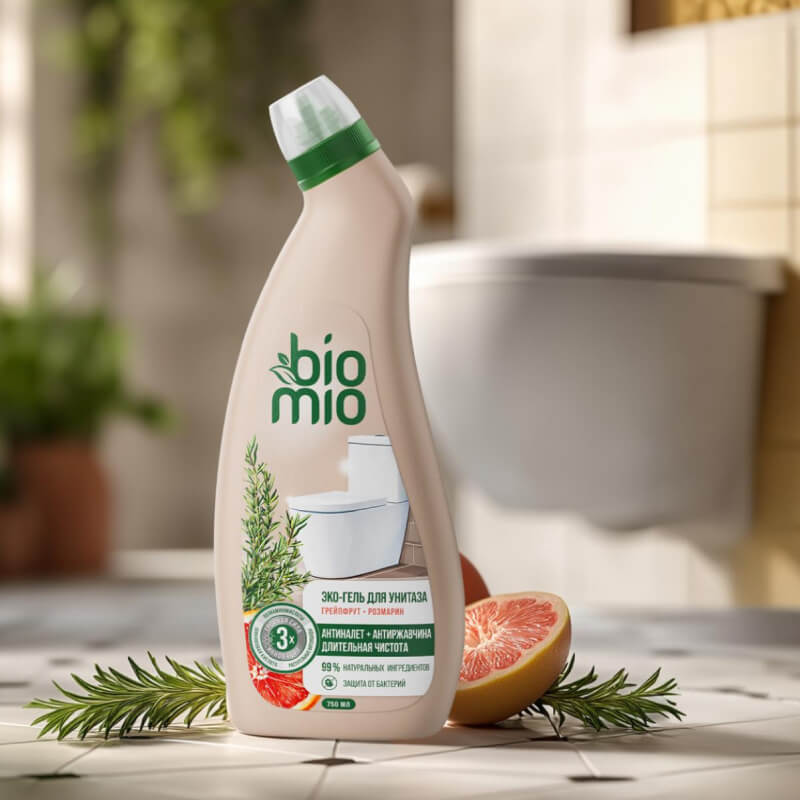 Эко-гель для унитаза BioMio бережно и эффективно очищает все виды загрязнений, придаёт белизну и блеск. Подходит для всех типов унитазов. Содержит 99% ингредиентов натурального происхождения. Инновационная формула средства на основе полиаминокислот, шикимовой кислоты и растительных фитонцидов справляется с известковым налётом и ржавчиной, а также придаёт блеск и обеспечивает длительную чистоту. Ароматическая композиция с эфирными маслами грейпфрута и розмарина придает помещению свежесть и создает приятную атмосферу.