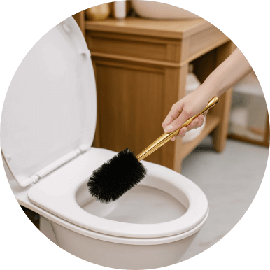 Открутите колпачок, нанесите средство под ободок унитаза, почистите поверхность ершика и при необходимости оставьте на 10 мин. Смойте средство водой.