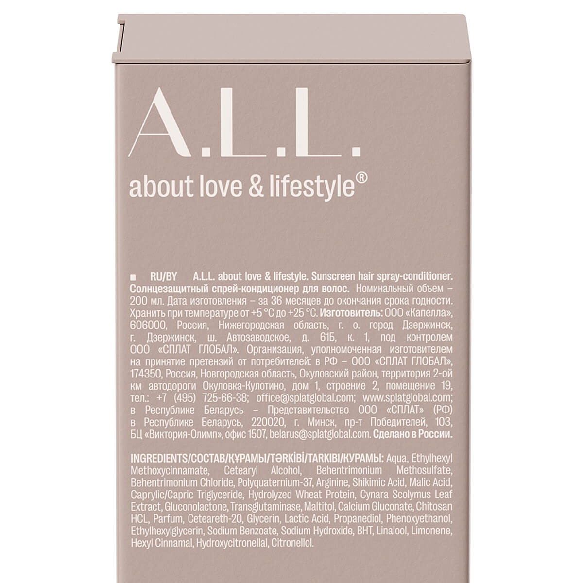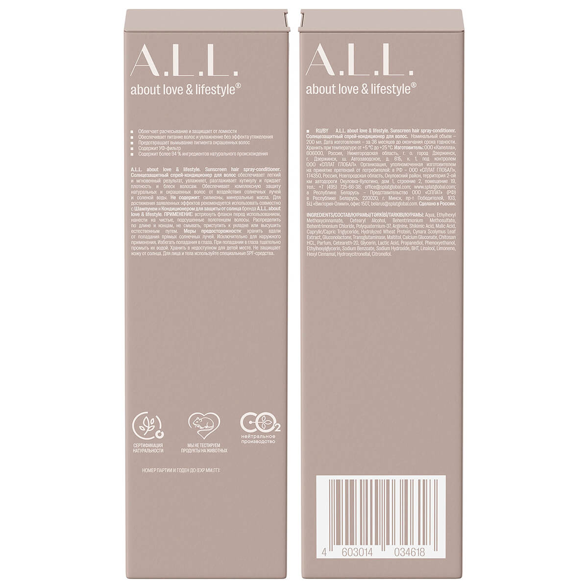 Солнцезащитный спрей-кондиционер для волос обеспечивает легкий и мгновенный результат, увлажняет, разглаживает кутикулу и придает плотность и блеск волосам. Обеспечивает комплексную защиту натуральных и окрашенных волос от воздействия солнечных лучей и соленой воды.