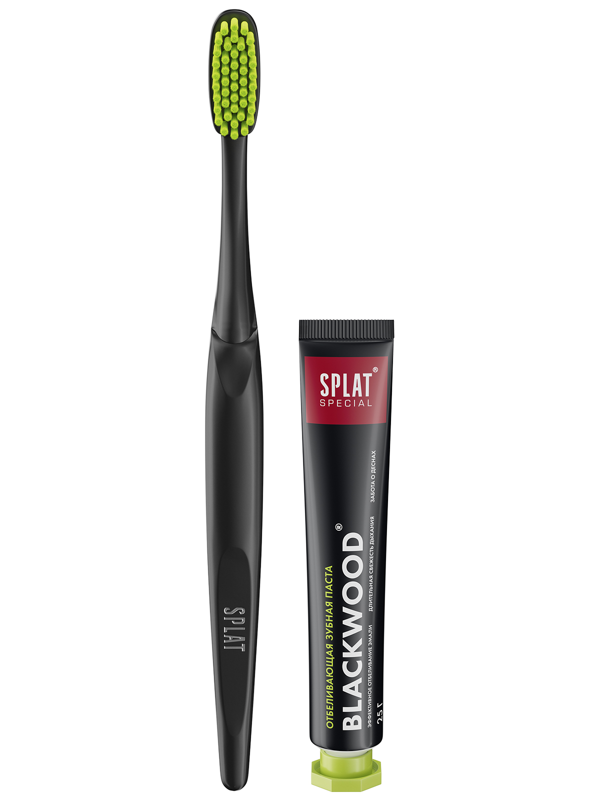 2. Отбеливающая зубная паста SPLAT Special «Черное дерево» (BLACKWOOD) с терпким ароматом можжевельника – для сильных духом! За мощный отбеливающий эффект отвечает карельский березовый уголь. Он же придает пасте глянцевый черный цвет. Экстракт ягод можжевельника и комплекс активных компонентов обеспечивают защиту от образования налета и поддерживают десны в тонусе.