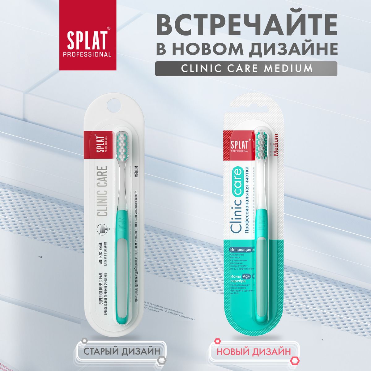 Зубная щетка Clinic Care от SPLAT® рекомендована Стоматологической ассоциацией России для ежедневного использования, а также до и после процедуры профессиональной гигиены.