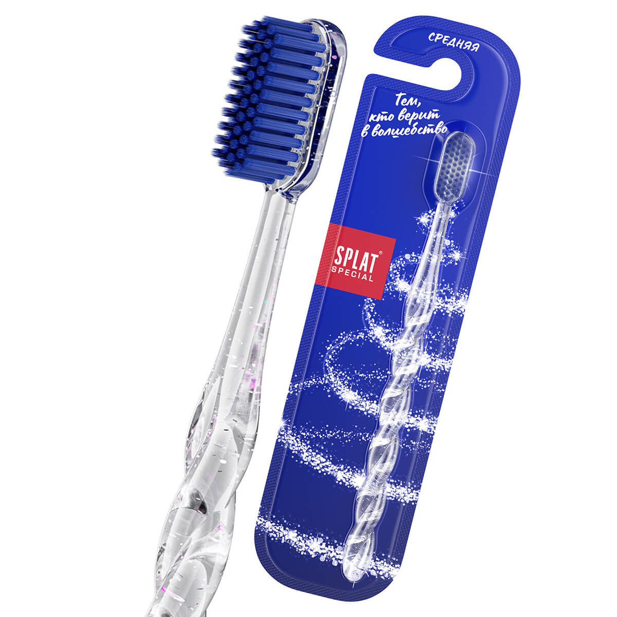 Комплексная зубная щетка серии Special «SPLAT (СПЛАТ) Белоснежная улыбка». Средняя. Прозрачная