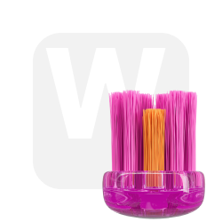 Специальное углубление в центре не позволяет щетине застревать в замках брекет-системы. Укороченные кончики щетинок центральных рядов очищают брекет-систему, а спиралевидные щетинки по бокам – эмаль зубов и межзубные промежутки. 3250 щетинок разной высоты не травмируют эмаль и десны.