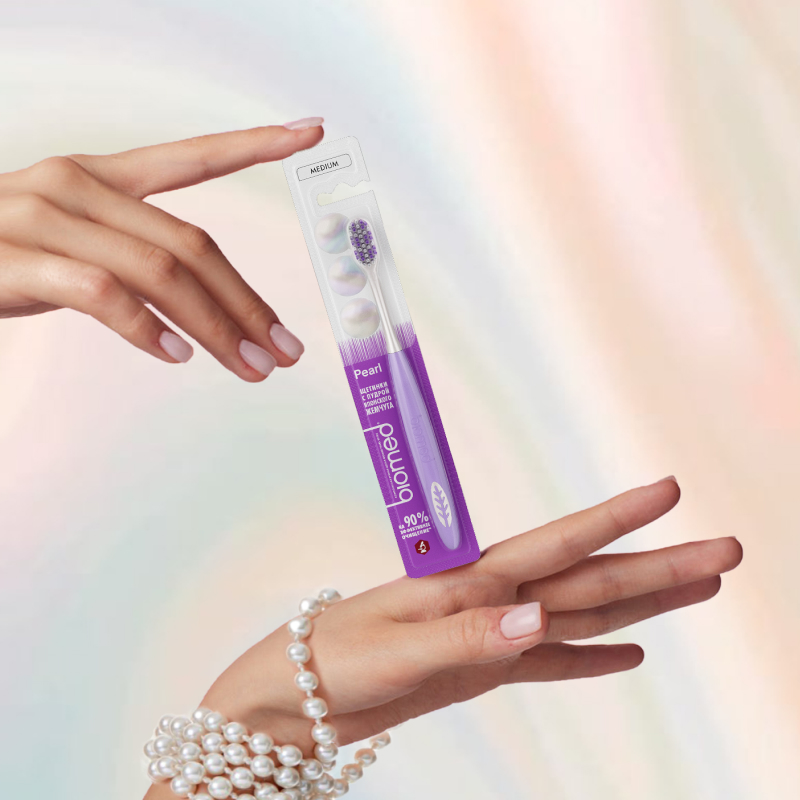 Зубная щетка BIOMED PEARL с японским жемчугом, добываемом на юге Японии, создана специально для деликатного осветления эмали.