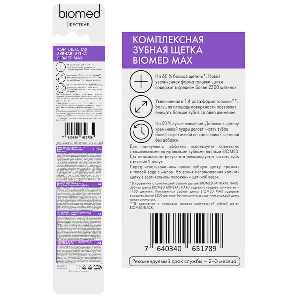 Зубная щетка Biomed MAX очищает больше зубов за одно движение. Более 2300 щетинок, покрытых кремниевой пудрой, гарантируют эффективное удаление налета. Закругленные кончики щетинок прошли 6 стадий шлифовки и 2 полировки сапфировыми дисками, обеспечивая безопасную и бережную чистку зубов и десен. Влагоустойчивая щетина сохраняет форму и эффективность надолго. Почувствуйте максимальное очищение с увеличенной новинкой BIOMED MAX!